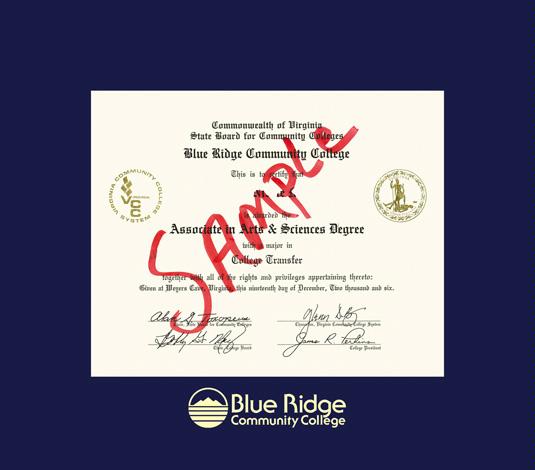 Blue Ridge Community College (VA) Diploma Frame with Navy Blue Mat and Gold Embossing