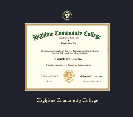 Highline Community College Diploma Frame with Black and Gold Double Mat and Gold Embossing