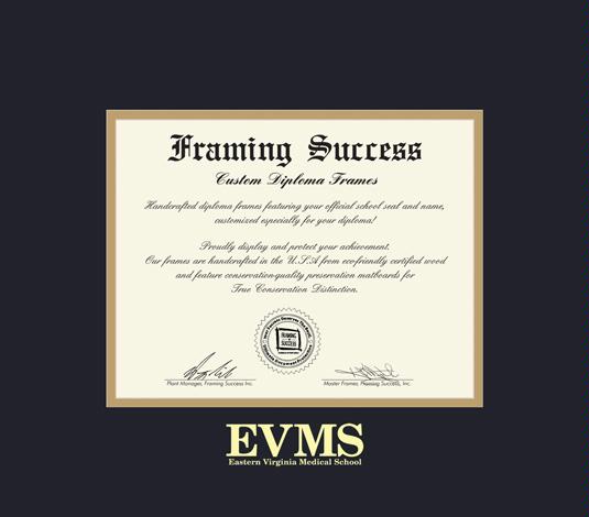 Eastern Virginia Medical School Diploma (5/10 to Present) Frame with Black and Gold Double Mat and Gold Embossing