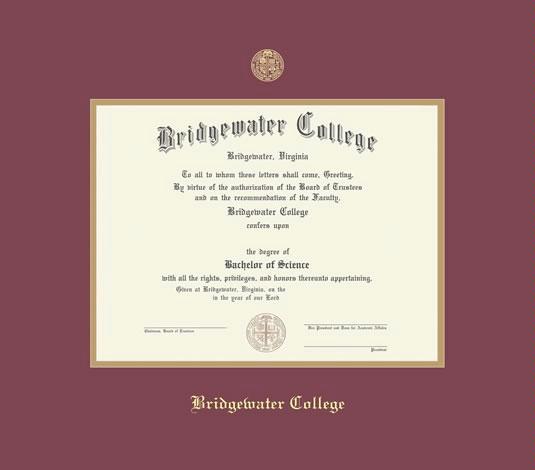 Bridgewater College Diploma Frame with Maroon and Gold Double Mat and Gold Embossing