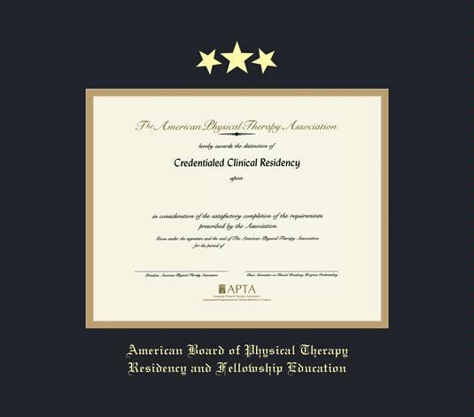 American Board of Physical Therapy Specialties Certificate Frame with Black and Gold Double Mat and Gold Embossing