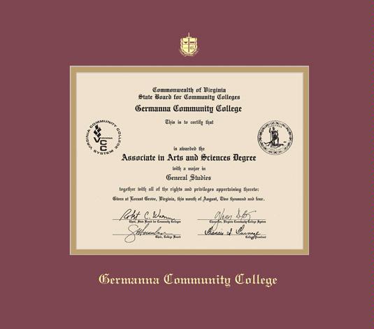 Germanna Community College Diploma Frame with Maroon and Gold Double Mat and Gold Embossing