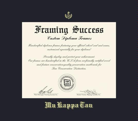 Mu Kappa Tau Certificate Frame with Black Mat and Gold Embossing