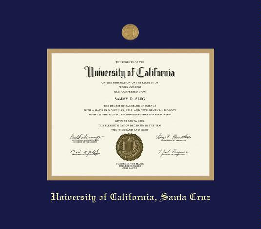 University of California, Santa Cruz Diploma Frame with Medallion and Navy Blue and Gold Double Mat and Gold Embossing