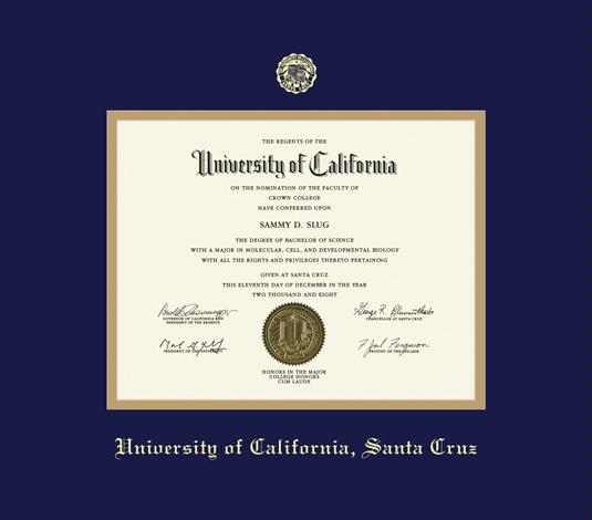 University of California, Santa Cruz Diploma Frame with Navy Blue and Gold Double Mat and Gold Embossing