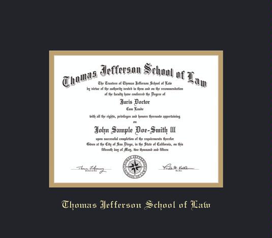 Thomas Jefferson School of Law Diploma Frame with Black and Gold Double Mat and Gold Embossing