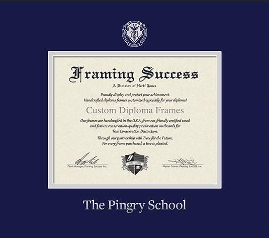 The Pingry School Diploma Frame with Navy Blue and Silver Double Mat and Silver Embossing