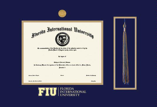 Florida International University Diploma - MA/Doc (5/11 to Present) and Tassel Cut out Frame with Medallion and Navy Blue and Gold Double Mat and Gold Embossing