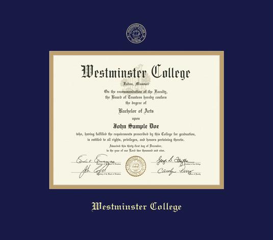 Westminster College Diploma Frame with Navy Blue and Gold Double Mat and Gold Embossing