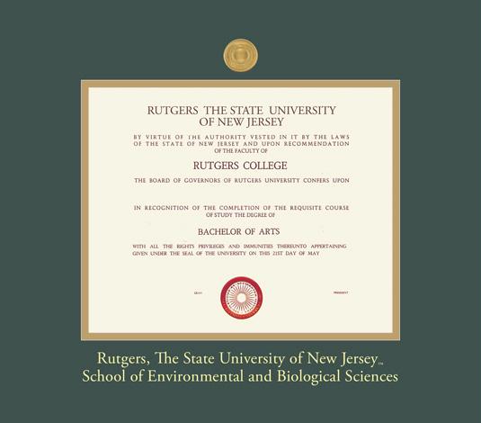 Rutgers University Diploma - School of Environmental and Biological Sciences Frame with Medallion and Green and Gold Double Mat and Gold Embossing