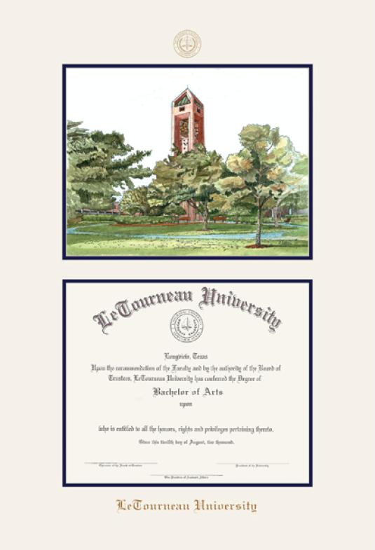 LeTourneau University Diploma - MA and Litho (1/11 to Present) Frame with Cream and Navy Blue Double Mat and Gold Embossing