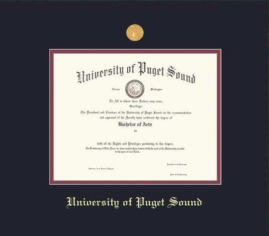 University of Puget Sound Diploma (12/05 to Present) Frame with Medallion and Black and Maroon Double Mat and Gold Embossing
