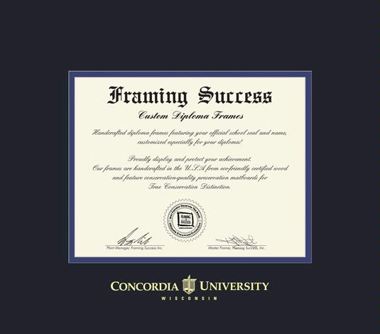 Concordia University Wisconsin Diploma Frame with Black and Royal Blue Double Mat and Gold Embossing
