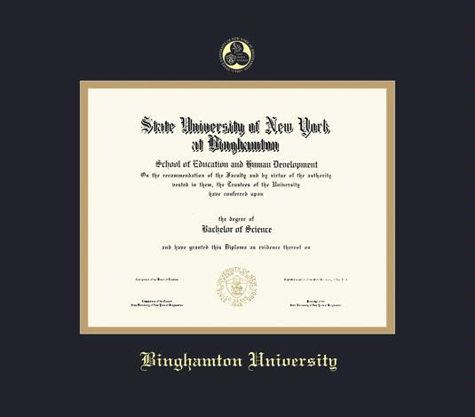Binghamton University Diploma (12/10 to Present) Frame with Black and Gold Double Mat and Gold Embossing