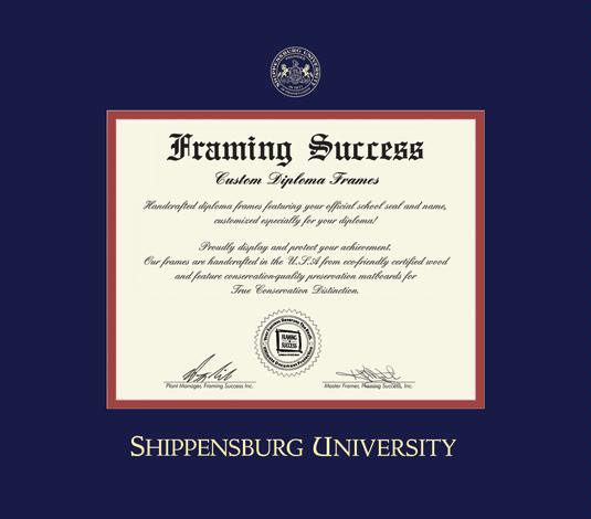 Shippensburg University Diploma - BA Frame with Navy Blue and Red Double Mat and Gold Embossing