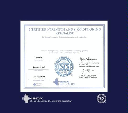 National Strength and Conditioning Association Certificate - Strength and Conditioning (10/11 to Present) Frame with Navy Blue Mat and Silver Embossing