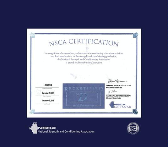 National Strength and Conditioning Association Certificate - Personal Trainer (10/11 to Present) Frame with Navy Blue Mat and Silver Embossing