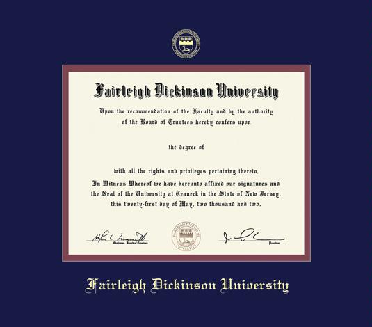Fairleigh Dickinson University Diploma - PhD (7/11 to Present) Frame with Navy Blue and Maroon Double Mat and Gold Embossing