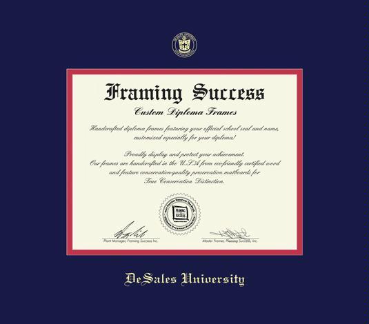 DeSales University Diploma Frame with Navy Blue and Red Double Mat and Gold Embossing