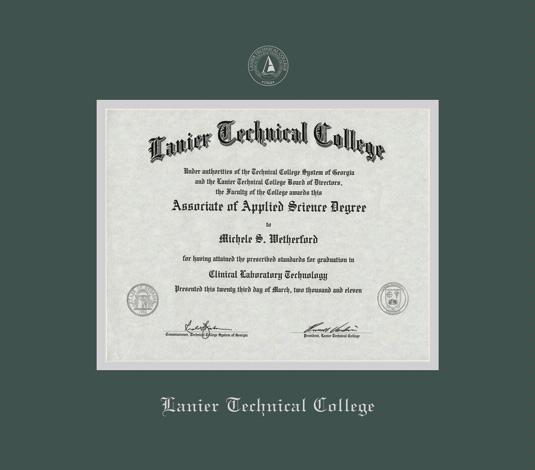 Lanier Technical College Diploma Frame with Green and Silver Double Mat and Silver Embossing