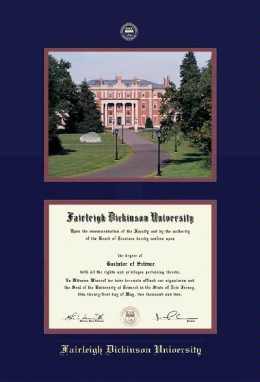 Fairleigh Dickinson University Diploma - BA/MA (7/11 to Present) and Photo Frame with Navy Blue and Maroon Double Mat and Gold Embossing