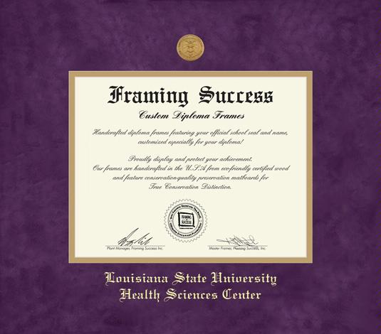 Louisiana State University Health Sciences Center Diploma - BA/MA Frame with Medallion and Purple Suede and Gold Double Mat and Gold Embossing