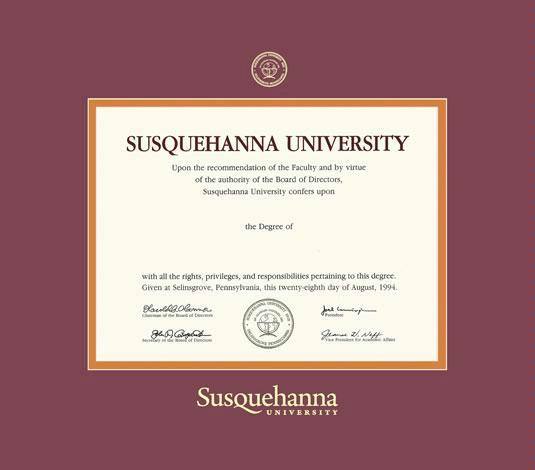 Susquehanna University Diploma (6/09 to Present) Frame with Maroon and Orange Double Mat and Gold Embossing