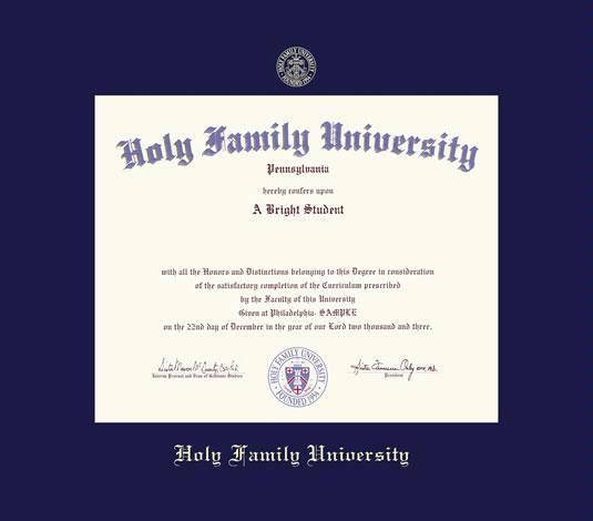 Holy Family University Diploma - Honorary Frame with Navy Blue Mat and Gold Embossing