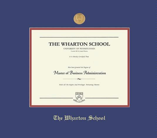 University of Pennsylvania Diploma - Wharton Frame with large Medallion and Royal Blue and Red Double Mat and Gold Embossing