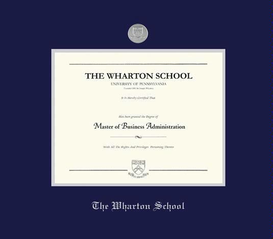 University of Pennsylvania Diploma - Wharton Frame with Large Medallion and Navy Blue and Silver Double Mat and Silver Embossing
