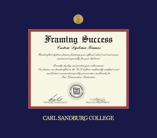 Carl Sandburg College Diploma Frame with Medallion and Navy Blue and Red Double Mat and Gold Embossing