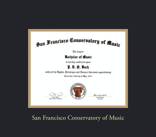 San Francisco Conservatory of Music Diploma Frame with Black and Gold Double Mat and Gold Embossing