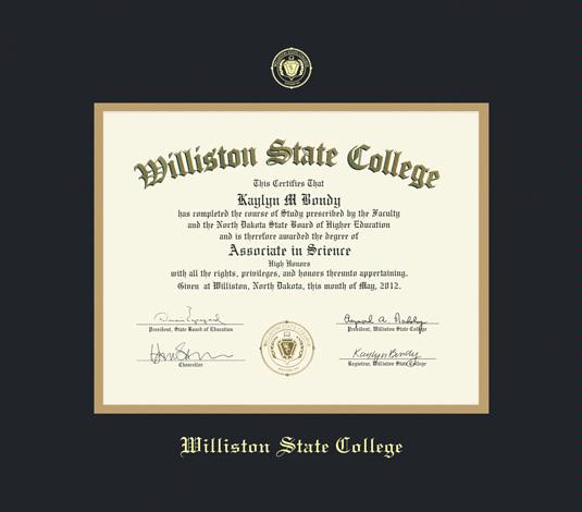 Williston State College Diploma Frame with Black and Gold Double Mat and Gold Embossing