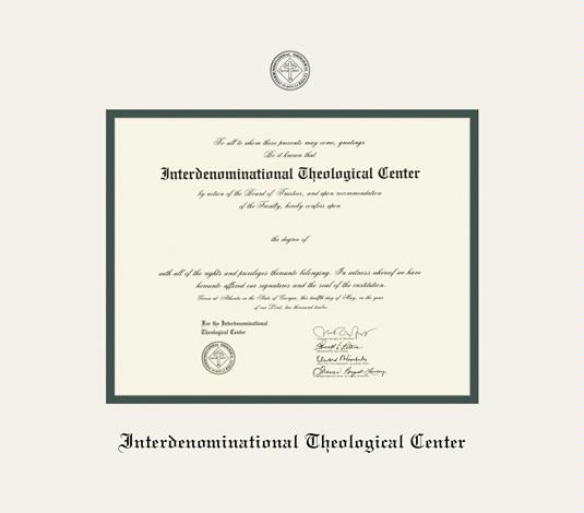 The Interdenominational Theological Center Diploma Frame with Cream and Green Double Mat and Black Embossing