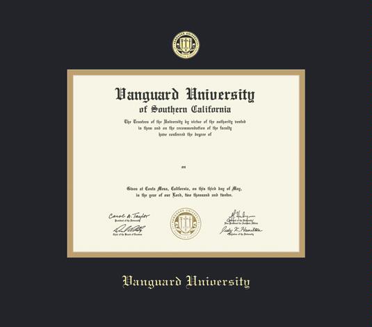 Vanguard University Diploma Frame with Black and Gold Double Mat and Gold Embossing