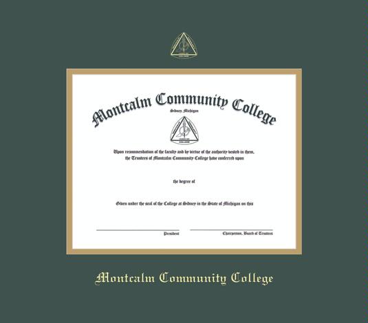 Montcalm Community College Diploma Frame with Green and Gold Double Mat and Gold Embossing