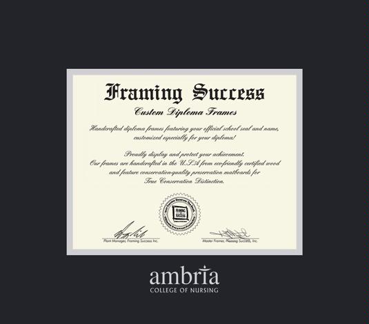 Ambria College of Nursing Diploma Frame with Black and Silver Double Mat and Silver Embossing