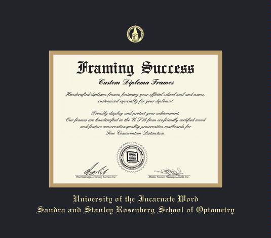 University of the Incarnate Word Diploma - Optometry Frame with Black and Gold Double Mat and Gold Embossing
