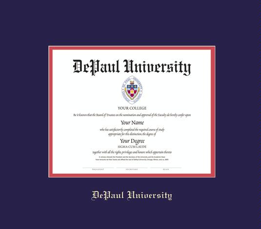 DePaul University Diploma - PhD/Law (3/13 to Present) Frame with Navy Blue and Red Double Mat and Gold Embossing