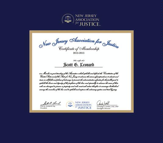 New Jersey Association for Justice Certificate Frame with Navy Blue and Gold Double Mat and Gold Embossing