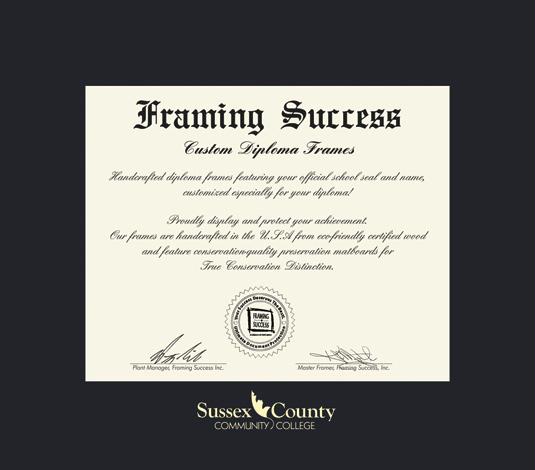 Sussex County Community College Diploma Frame with Black Mat and Gold Embossing