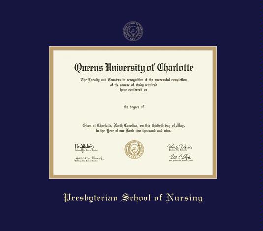 Queens University of Charlotte Diploma - Nursing (7/13 to Present) Frame with Navy Blue and Gold Double Mat and Gold Embossing