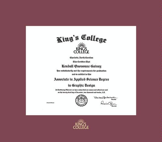 King's College Diploma Frame with Maroon Mat and Gold Embossing