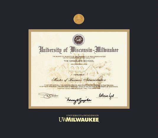 University of Wisconsin - Milwaukee Diploma (8/13 to Present) Frame with Medallion and Black and Gold Double Mat and Gold Embossing