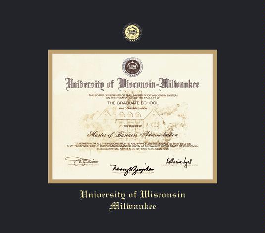 University of Wisconsin - Milwaukee Diploma (8/13 to Present) Frame with Black and Gold Double Mat and Gold Embossing