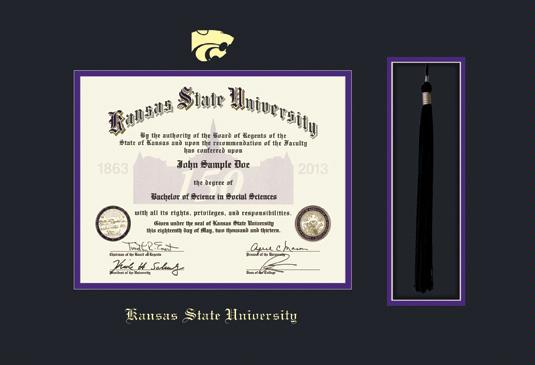 Kansas State University Diploma - BA/MA and (Pre 2023) PhD Frame with Tassel Cut-out and Black and Purple Double Mat and Gold Embossing