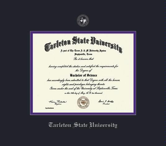 Tarleton State University Diploma Frame with Black and Purple Double Mat and Silver Embossing