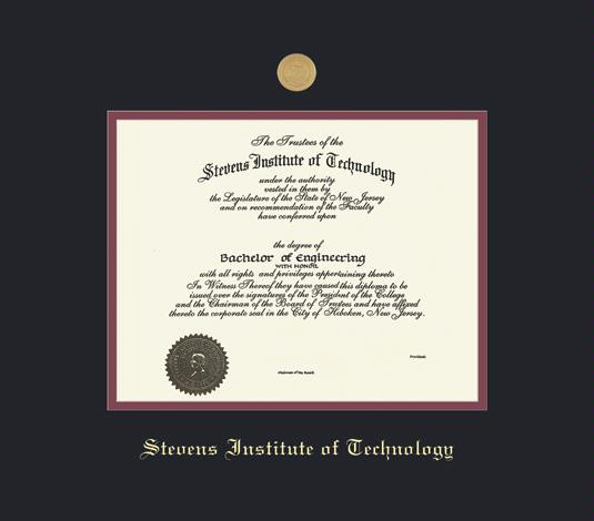 Stevens Institute of Technology Diploma (7/13 to Present) Frame with Medallion and Black and Maroon Double Mat and Gold Embossing
