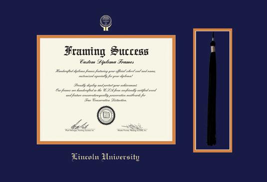 Lincoln University (PA) Diploma (11/13 to Present) Frame with Tassel Cut-out and Navy Blue and Orange Double Mat and Gold Embossing