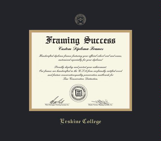 Erskine College Diploma Frame with Black and Gold Double Mat and Gold Embossing